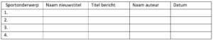 - Kies de kranten van één dag en vergelijk de hoeveelheid aandacht die verschillende nieuwstitels aan sport op die dag besteden. Welke sport verdient volgens jou meer aandacht en welke sport minder? Geef aan waarom je dat vindt.